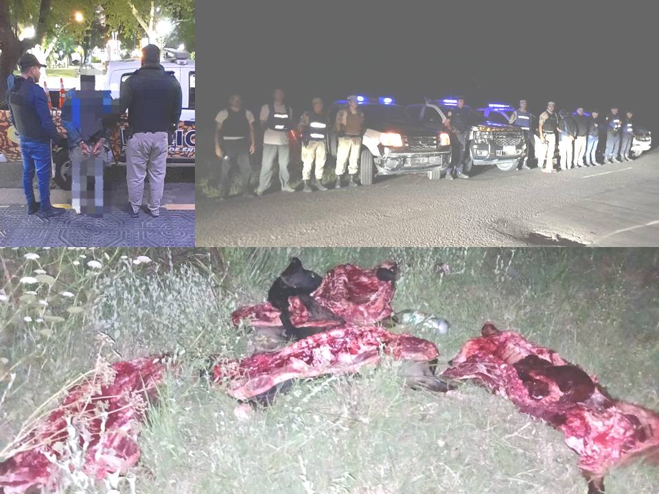 Tras carneadas a la vera de ruta provincial N° 22, denunciadas por productores de Distrito Yuqueri y Estación Yerua, personal de la Brigada de Abigeatos Concordia, dependiente de la Dirección General de Prevención de Delitos Rurales se aboco a reforzar la operativad en la zona, y a la investigación de los hechos. De tal tarea la semana proxima pasada se realizaron allanamientos en la ciudad de Concordia con secuestro de cortes carnicos que tendrian relacion a hechos denunciados; y en la vispera en horas nocturnas ya montado el operativo preventivo de refuerzo en la zona se logra la aprehensión en flagrancia de un masculino mayor de edad oriundo de la Ciudad cabecera Departamental, quien portaba un arma de fuego, y estaba acompañado de otras personas que se dieron a la fuga. Al momento de ser identificado este ciudadano el personal policial, tambien constata en el lugar que eran 3 vacunos los faenados, por lo que las autoridades judiciales ante un hecho de ABIGEATO Flagrante disponen el traslado a Jefatura Departamental del masculino aprehendido, en tanto que el personal de Brigadistas prosigue con las tareas de rastrillague en la zona con el fin de localizar a las personas que en primera instancia evadieran el accionar policíal. Continuandose con las tareas investigativas y periciales entorno del hecho, en conocimiento de la Fiscalia interviniente.
