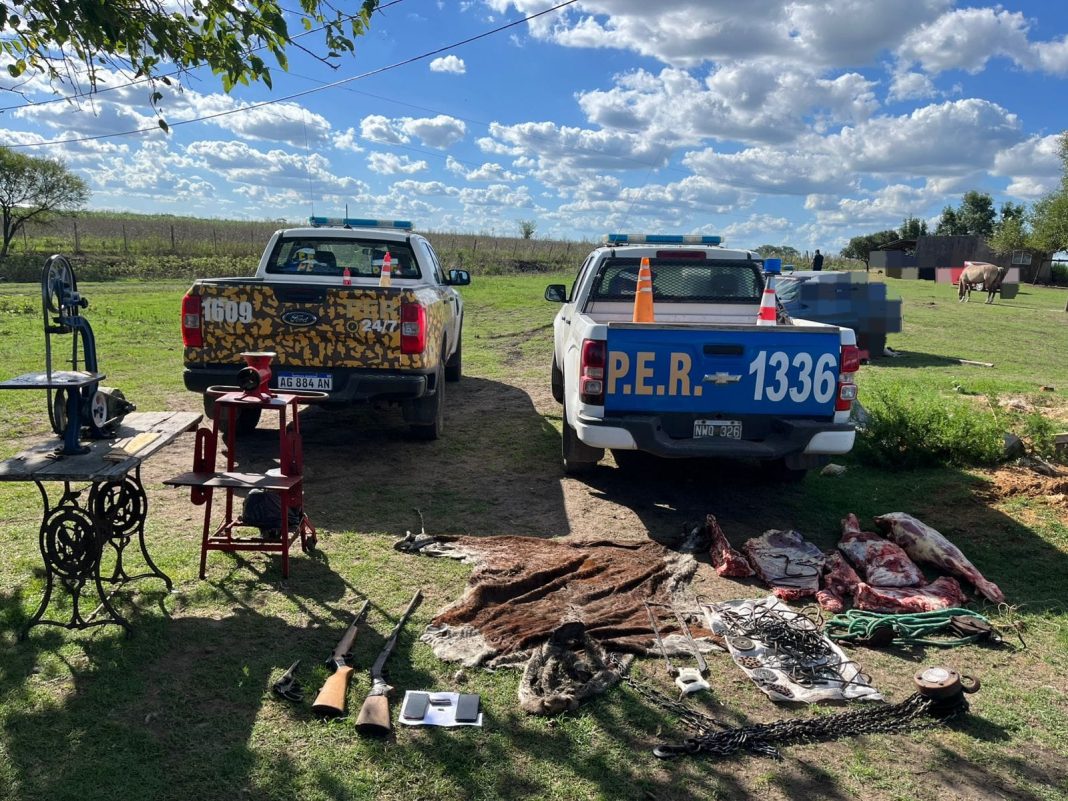 Este viernes al dar cumpliento la misma, los Brigadistas se encontraron con una carnicería improvisada con todos los elementos necesarios para la faena, de donde secuestraron cortes cárnicos de origen bovino, elementos varios de faena y hasta maquinarias para su desposte y procesamiento, 2 armas de fuego, telefonía celular.